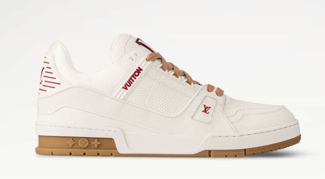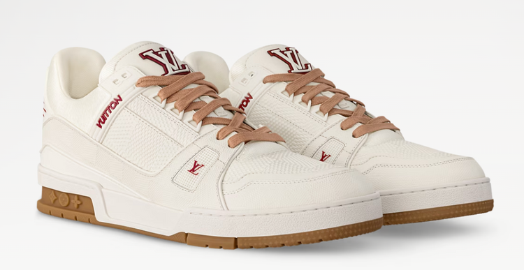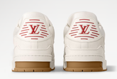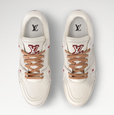 This refined iteration of the iconic LV Trainer sneaker is crafted from soft calf leather embossed with the historic Damier pattern. Leather laces with metal tips further enhance this model, which also features contrasting LV Initials and Vuitton signatures. The technical rubber outsole is decorated with three Monogram Flowers.