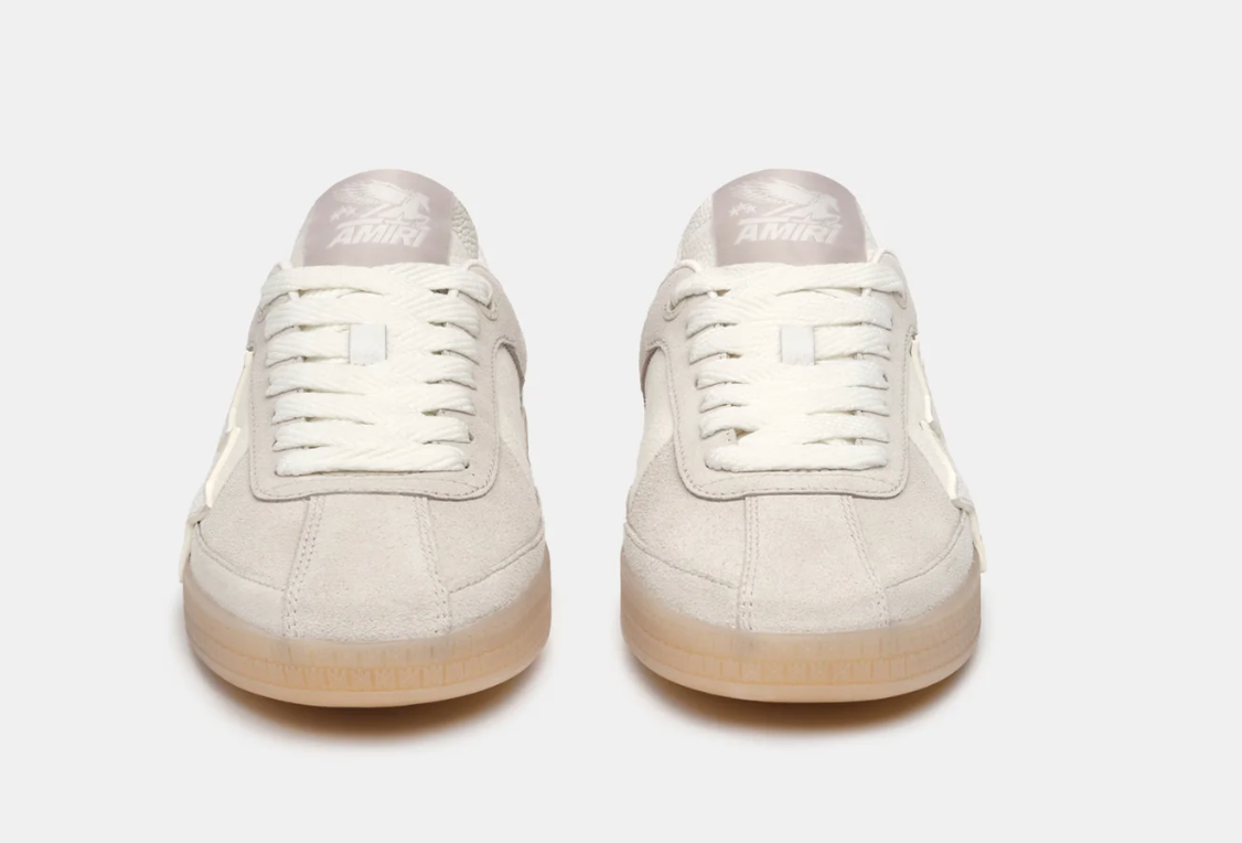 The Spring-Summer 2025 collection introduces new editions of the Pacific, a house icon inspired by time-honored athletic sneakers and designed in a low, streamlined profile. The Suede Pacific is crafted on an MA icon-patterned rubber sole with a suede upper and the house's signature three-star leather appliqué.
