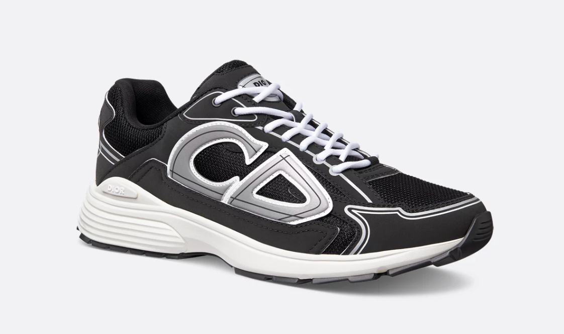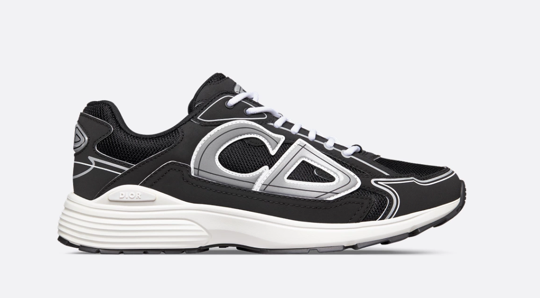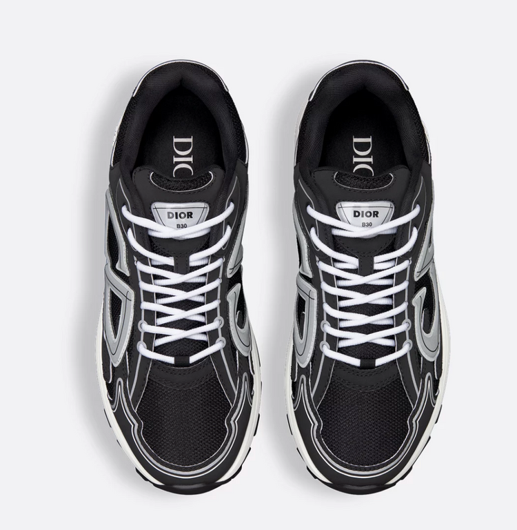 The B30 Countdown low-top sneaker, a new must-have for the brand, showcases a stylish, sporty silhouette. Crafted from grey technical mesh and accented with light blue, blue, and grey technical fabric, it features a reflective CD30 logo for a graphic appeal. Silver Dior B30 and CD30 signatures are embellished on the tongue and back. The ultra-lightweight, sculpted rubber sole is accented with classic details, while the elastic inner lining provides exceptional comfort, perfect for any casual look.