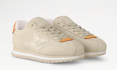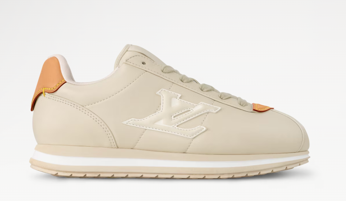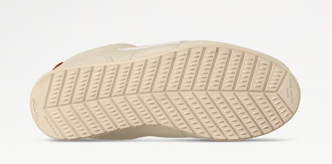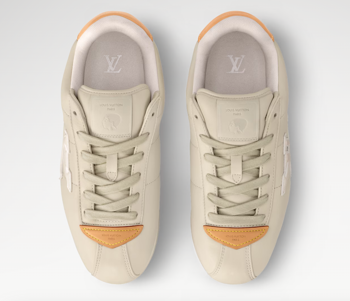 The LV BUTTERSOFT Sneaker was designed by Men's Creative Director Pharrell Williams and is crafted by Louis Vuitton artisans to maximize the ultra-soft feel of the leather, a combination of lamb and calfskin, and the padded upper. It features rich detailing, including the LV Initials, natural leather trim, and embossed motifs of Pharrell Williams' profile and a lobster, referencing the Fall-Winter 2025 men's show.