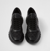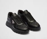 - Enameled metal triangle logo on the upper and screen-printed Prada Milano logo on the tongue