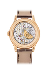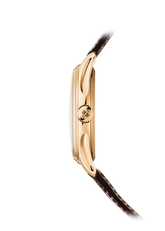 Rose gold. Diameter: 39 mm. Thickness: 9.71 mm. Water-resistant to 30m. Sapphire crystal case back.