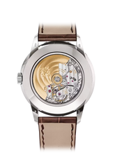 White gold. Diameter: 40 mm. Thickness: 11.13 mm. Water-resistant to 30m. Sapphire crystal case back.