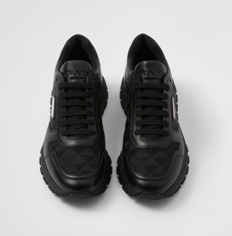 Leather and Re-Nylon high-top sneakers